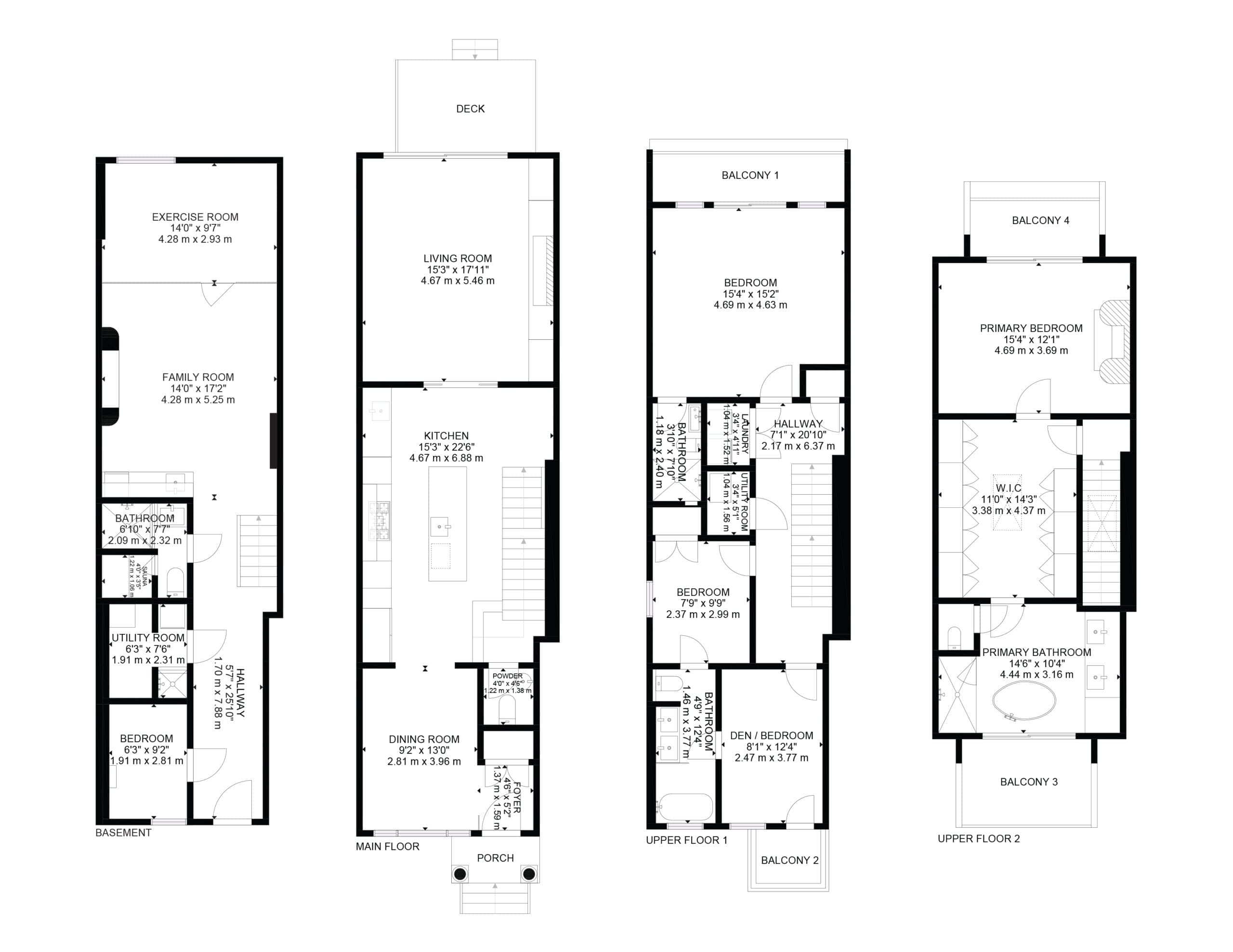 2nd Floor Primary, 3rd Floor Balcony + Backyard Deck