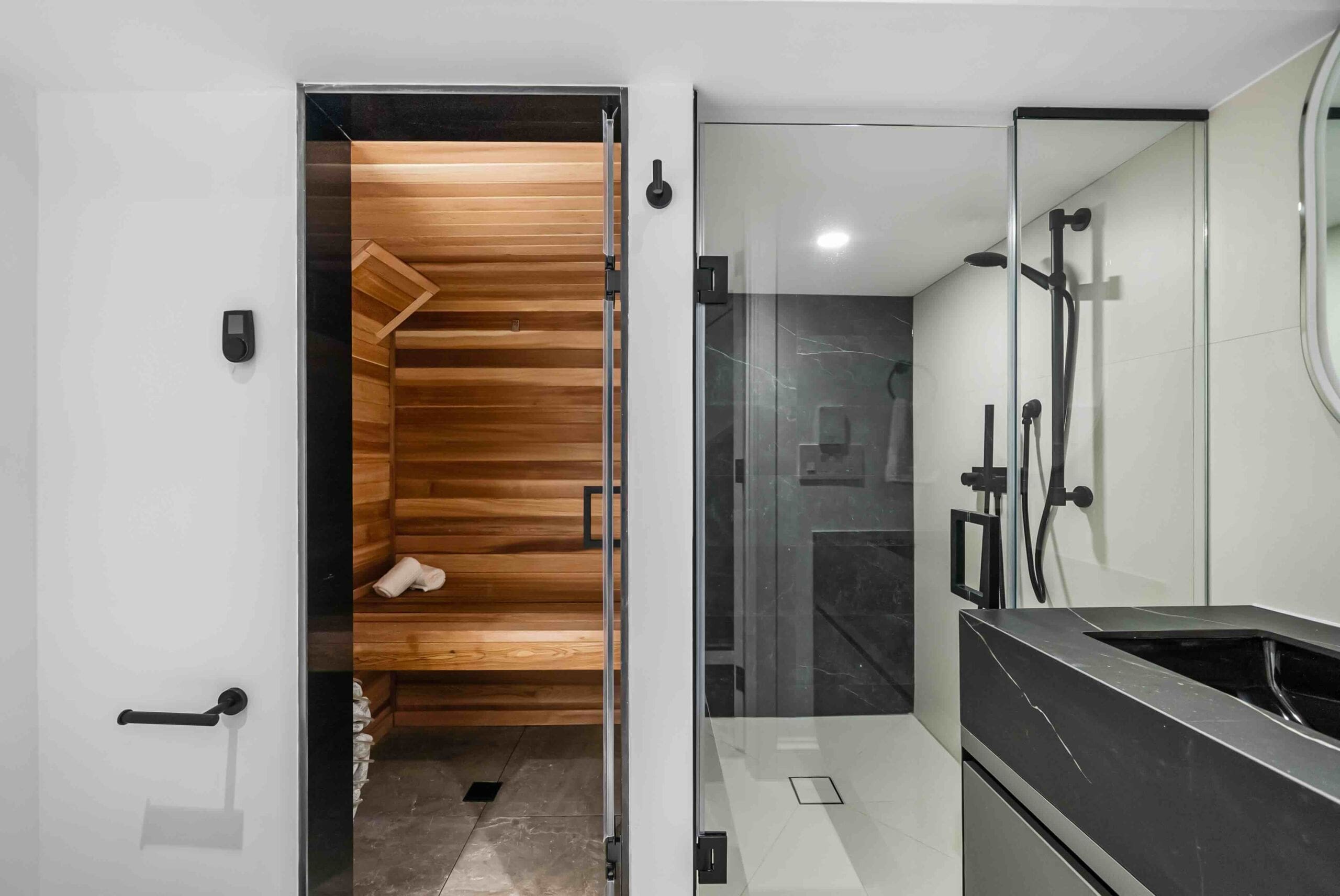 The lower level adds yet another dimension to the home. Thoughtfully designed to balance function and indulgence, it features a fully realized lounge with wet bar, a home gym, cedar sauna, guest suite, and walk-out access. Whether it’s a quiet evening in, a place to host, or a private escape within the home, this level adapts effortlessly.