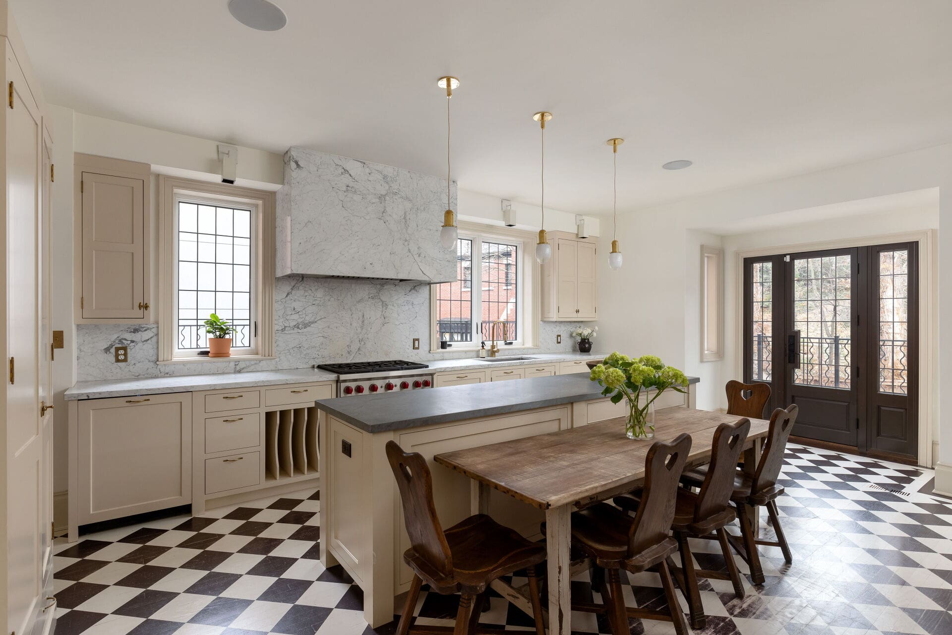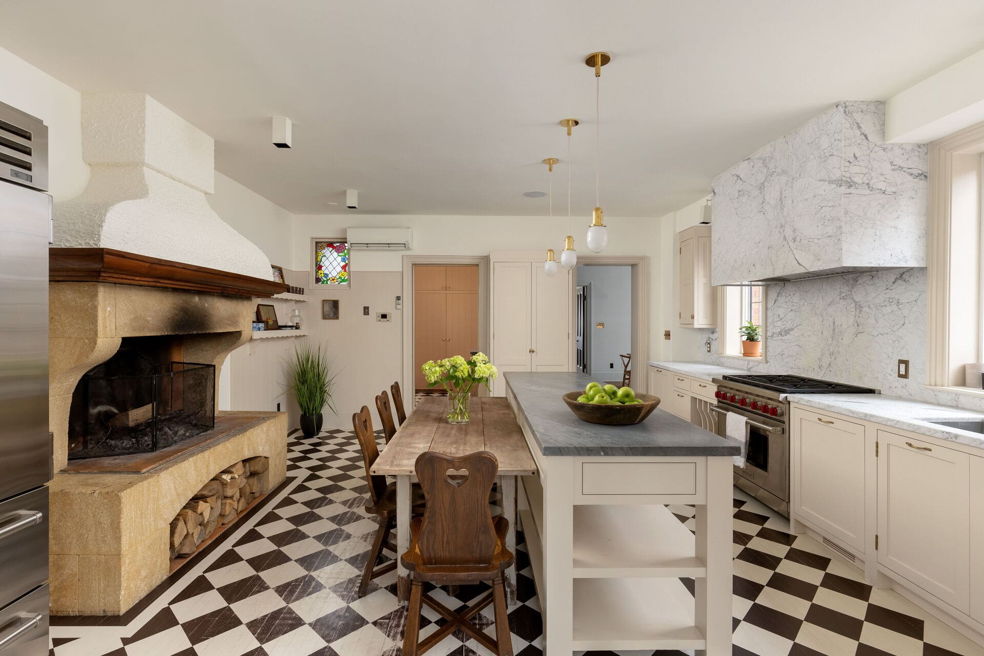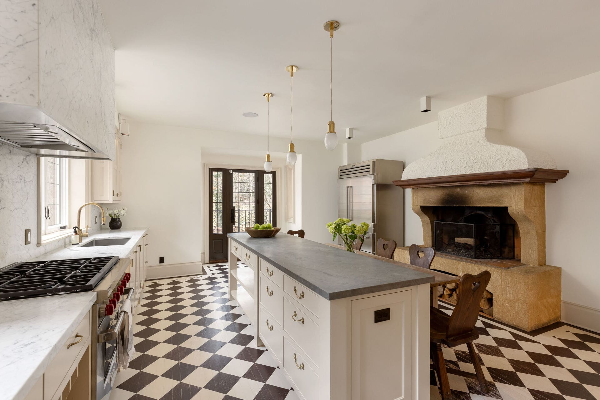 Custom Kitchen with Wood-Burning Fireplace